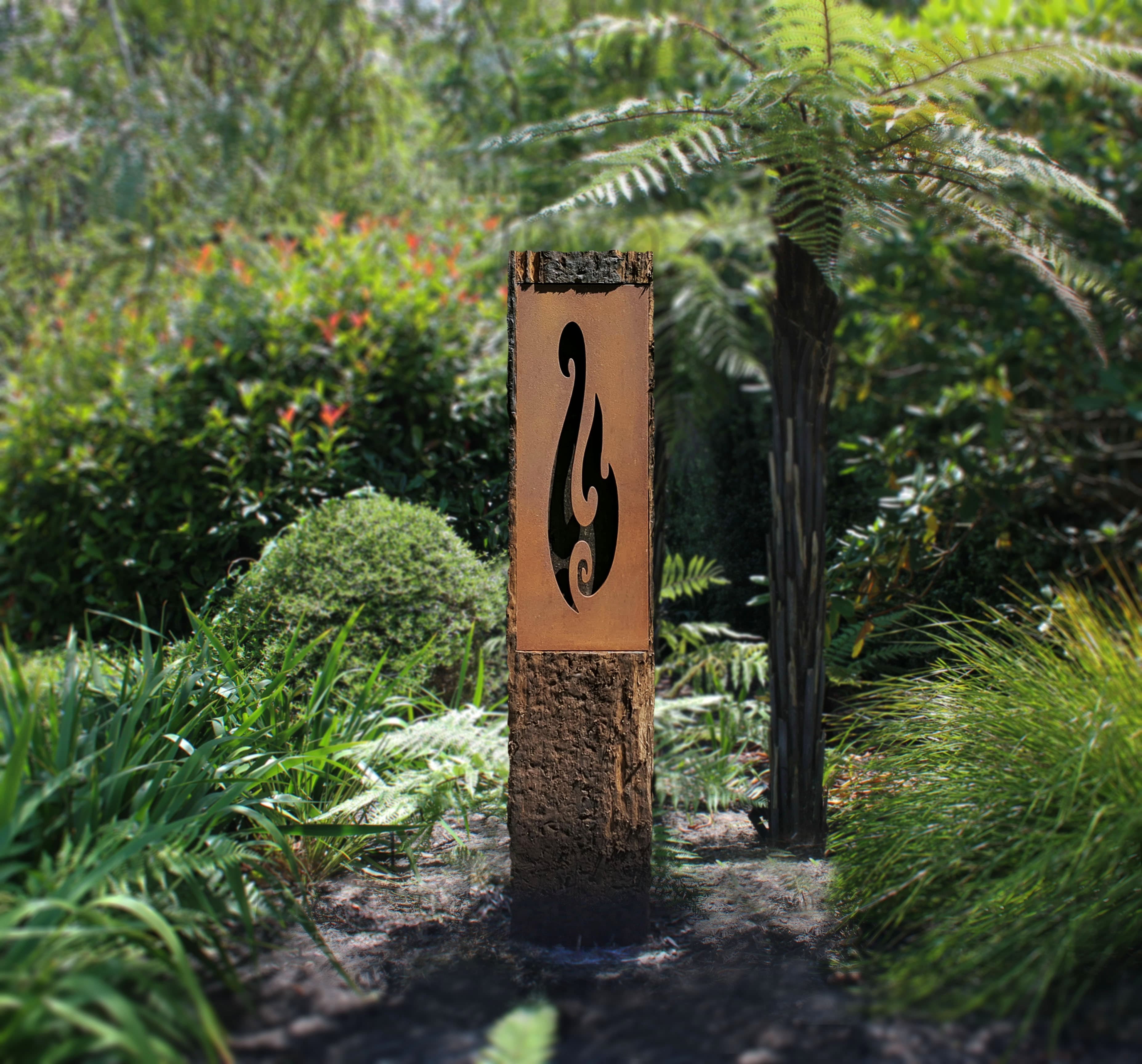 Our range of beautiful sculptures are handcrafted from retired New Zealand pinus radiata railway sleepers, corten steel, and lit by the clean green energy of solar neon/LED. The combination of naturally patinated steel plates set against repurposed pine gives Woodan Art garden sleeper sculptures their unique, rugged beauty.